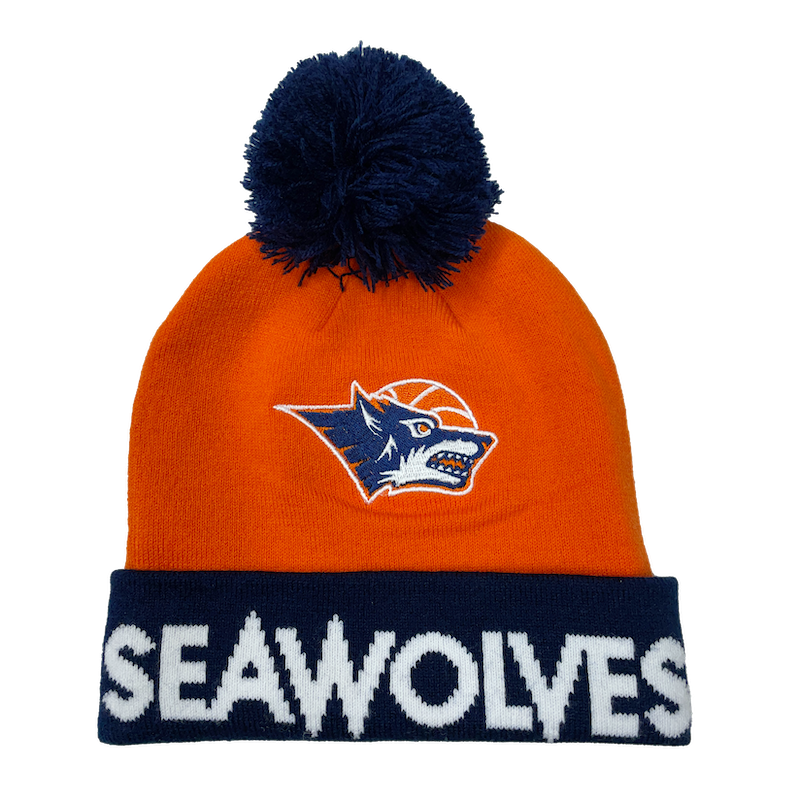 Mit dem leuchtend orangen Seawolves Beanie behältst du einen warmen Kopf und bringst Farbe in die Stadt. Der Schriftzug Rostock Seawolves ist eingewebt. Die Bildmarke auf der Vorderseite der Mütze ist gestickt. Eine stylische Bommel runded den Look ab.