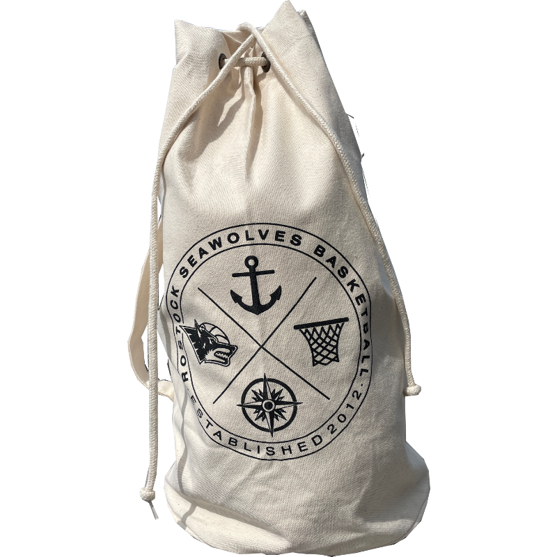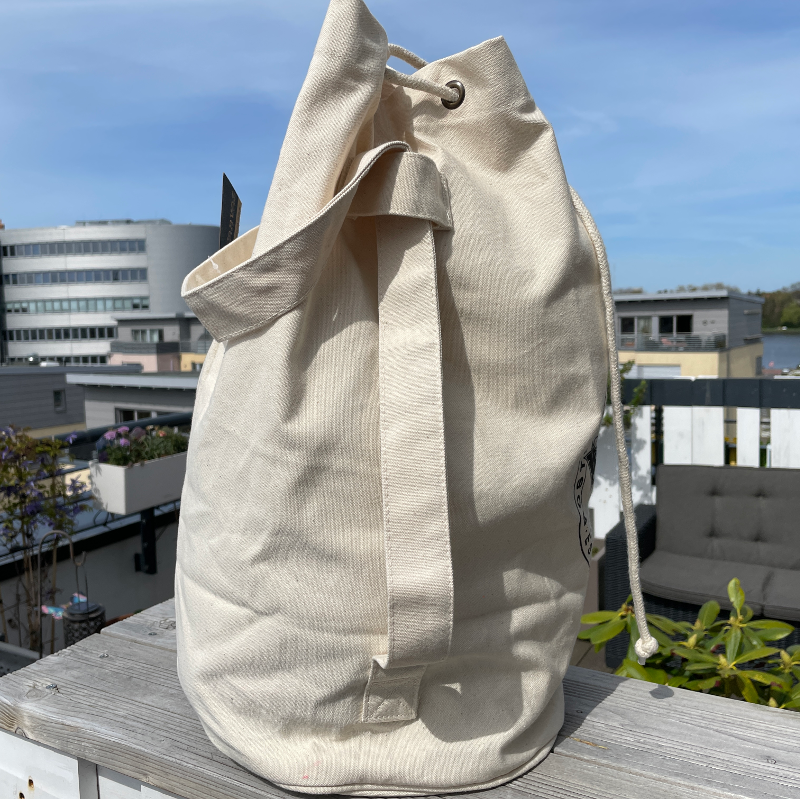 Ein Stück Heimat für unterwegs - das ist unser Seesack. Er ist ca. 52 cm hoch und bietet viel Stauraum für kleinere Ausflüge. Er ist aus 100% Baumwolle und daher nicht wassserfest.