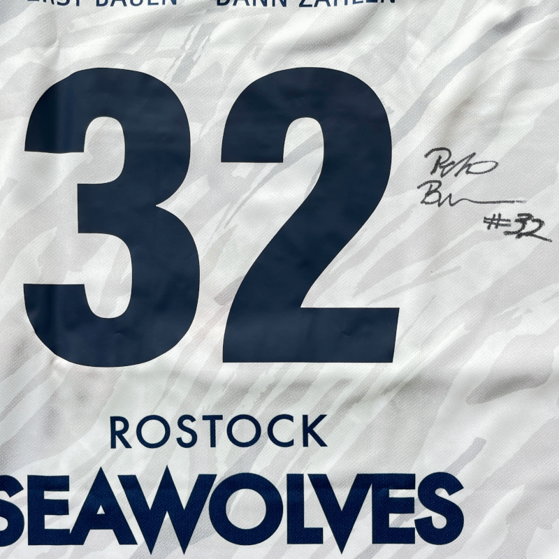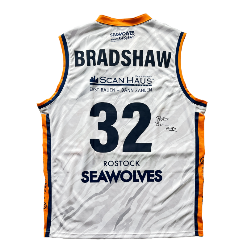Nutzt diese tolle Gelegenheit und sichert euch ein außergewöhnliches Sammlerstück. Pedro Bradshaw hat sein getragenes BBL PRO-Style Auswärtstrikot 2024/2025 für euch signiert. Das Trikot hat die Größe "XL", kann aber auch als Größe "2XL" getragen werden.