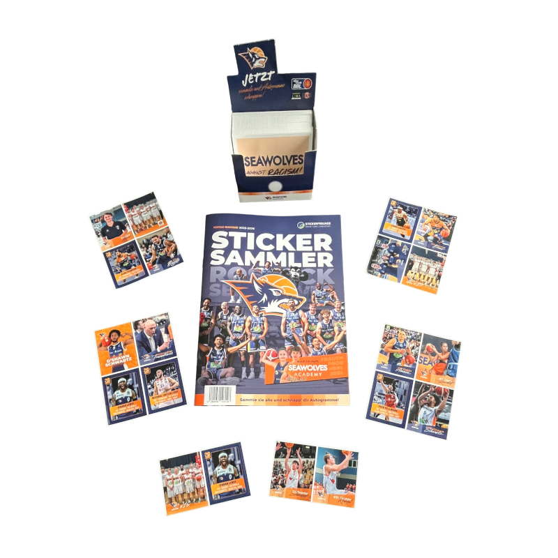 Taucht ein in die bunte Welt der Rostock Seawolves - euch erwarten insgesamt 85 einzigartige Motive und 7 verschiedene Stickerkategorien. In jedem versiegelten Pack erwarten euch 4 Sticker, die zufällig zusammengestellt wurden. Sichert euch jetzt die ultimativen Sammlerstücke! Nur solange der Vorrat reicht🛒!