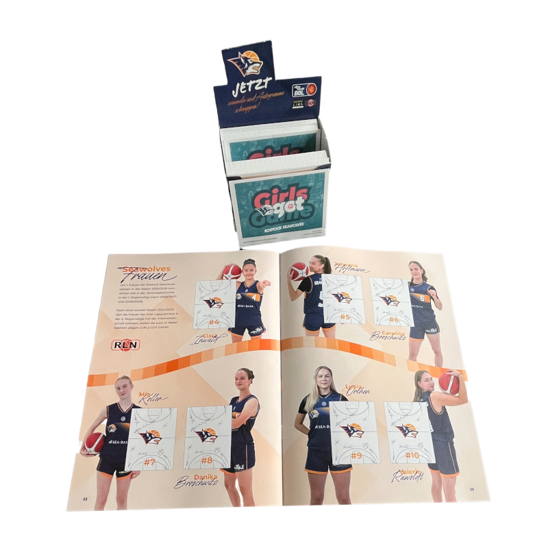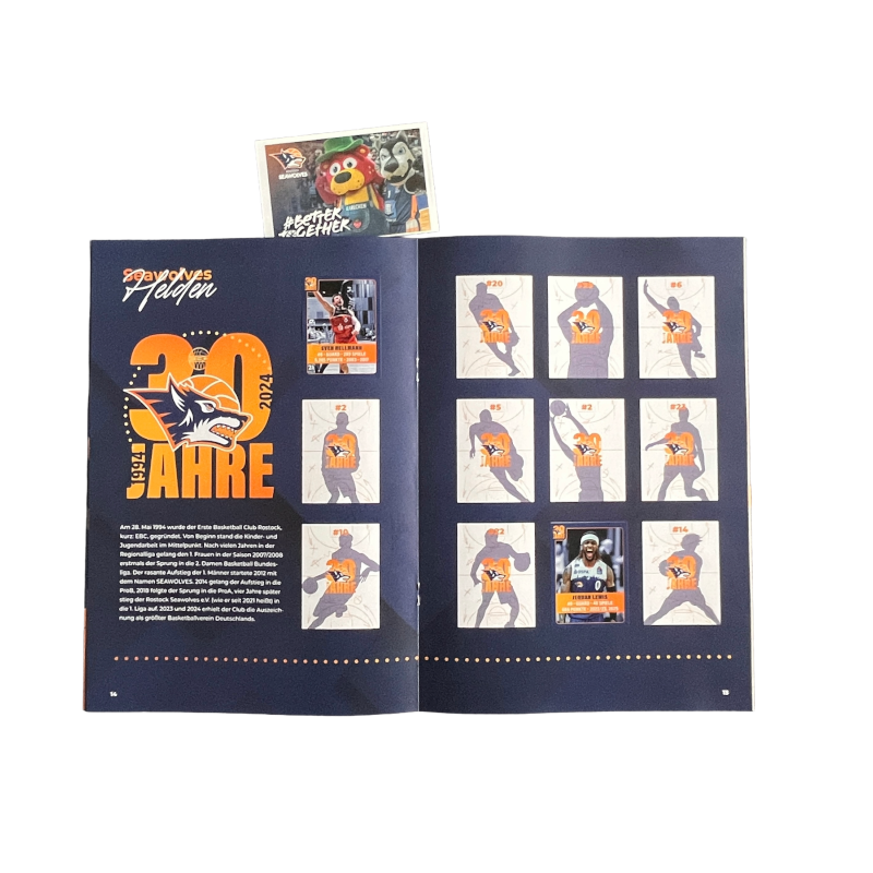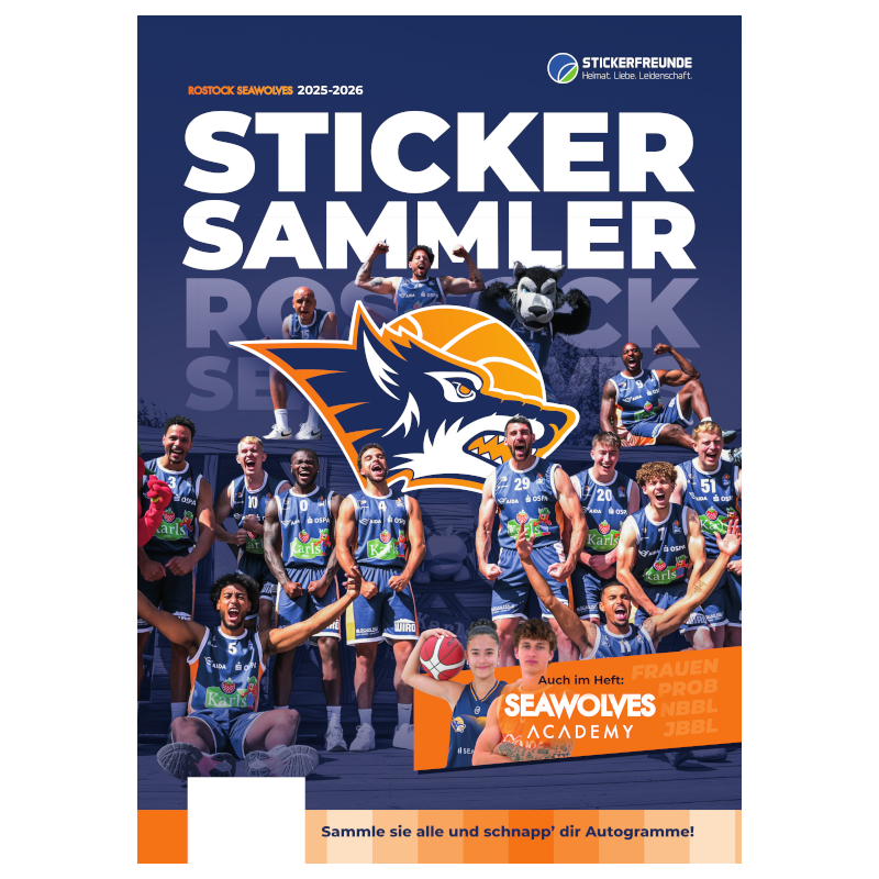 ACHTUNG: Vor dem Jahreswechsel 2025/2026 sind die Stickeralben exklusiv bei den BBL-Heimspielen in der StadtHalle Rostock und in Karls Erlebnisdorf Rövershagen verfügbar. Ab 01. JAN 2026 ist es online verfügbar und anschließend auch im Fanshop in der Langen Str. 35.