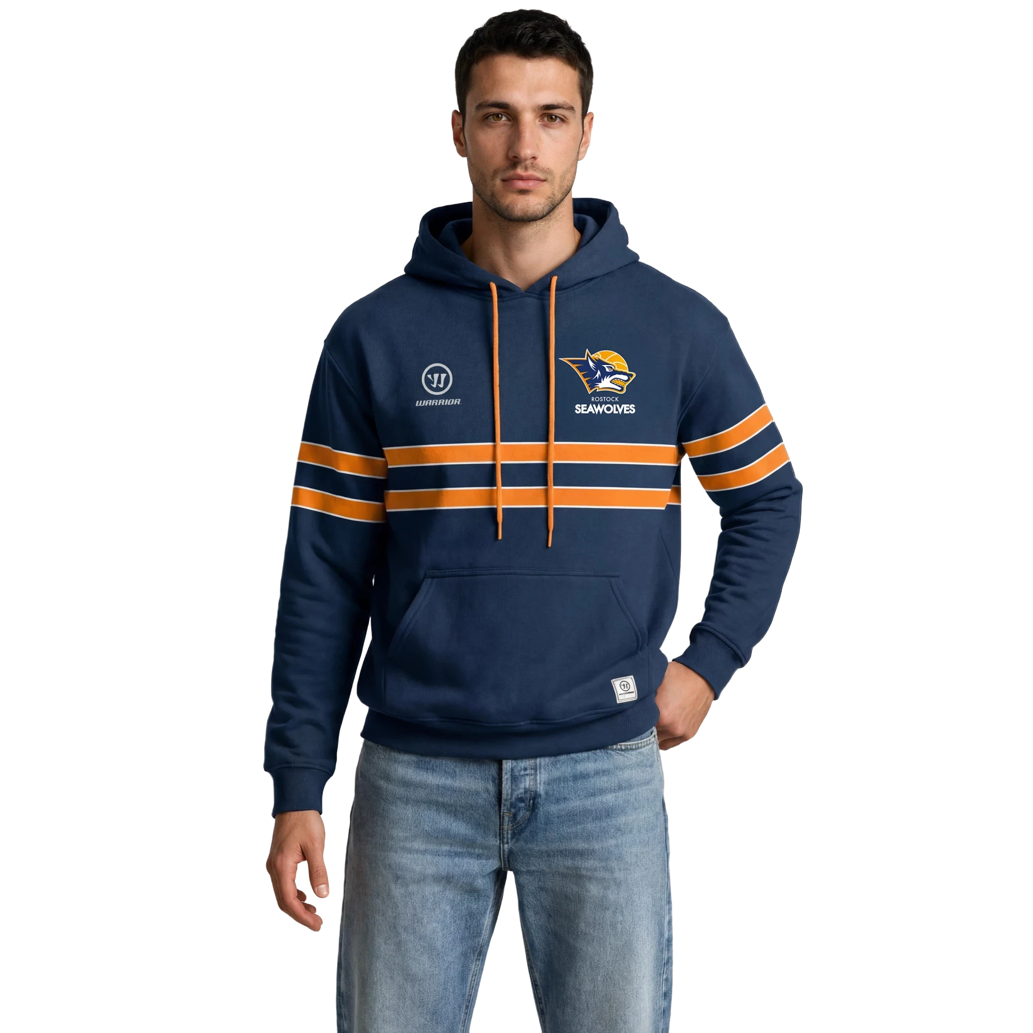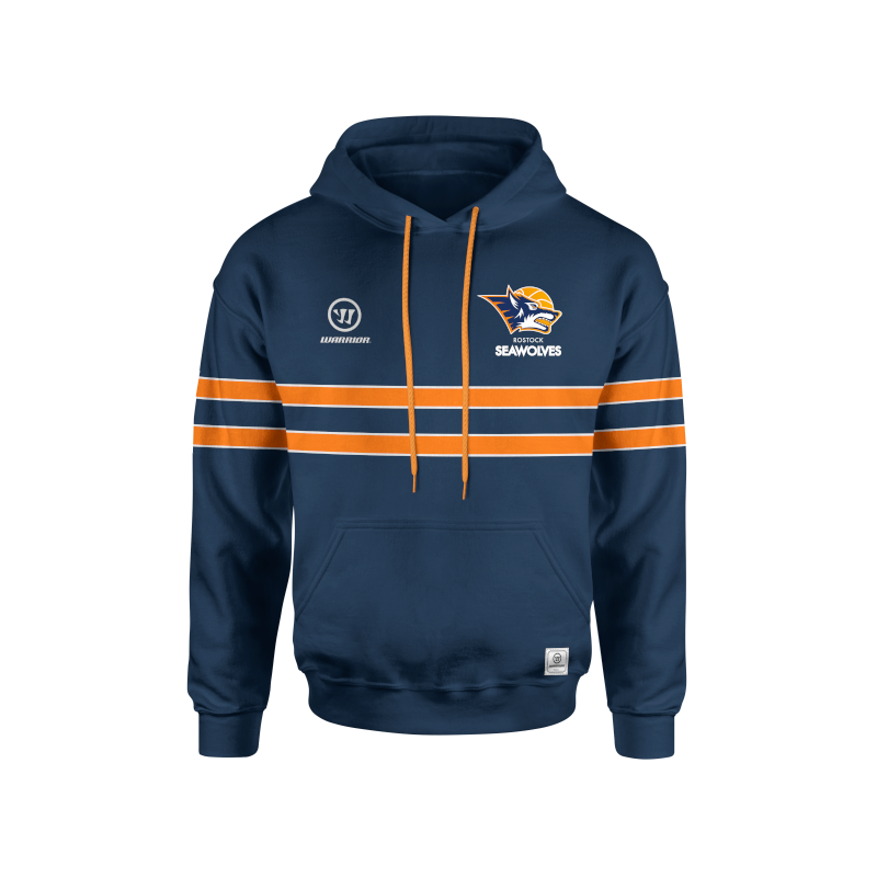 Der Signature Hoodie von WARRIOR ist echter Hingucker. Die markanten Querstreifen verleihem dem Hoodie leichte Football Vibes. Die Qualität spricht für sich - selbst die Kordeln sind in Seawolves Farben. Der Hoodie ist auch in Kindergrößen bis 2XS (146/152) erhältlich und ein Muss für jeden Fan.